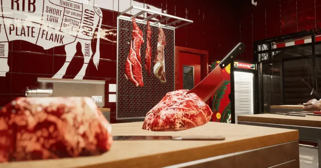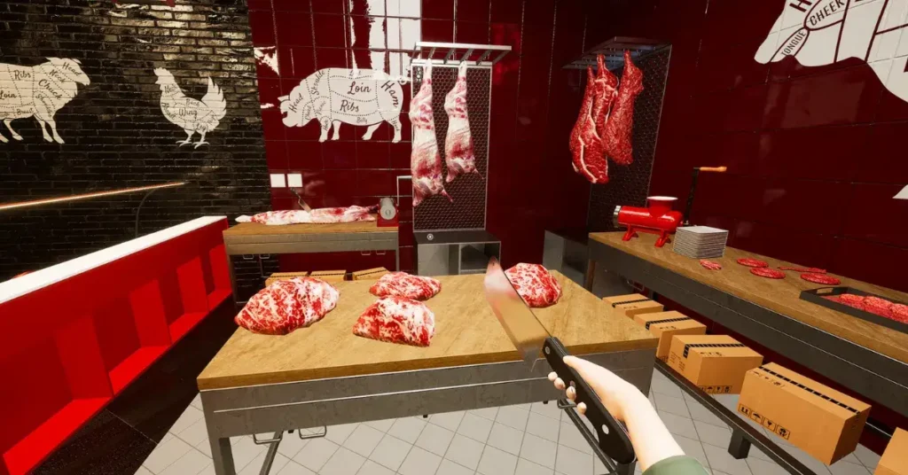 In Butcher Life Simulator, players begin with a small local meat shop and gradually work toward building a successful business. The gameplay combines practical shop tasks with financial decision-making.