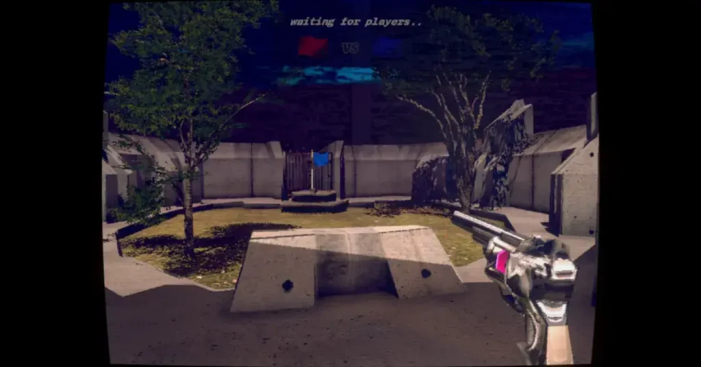 No Players Online focuses on exploration, atmosphere, and psychological tension rather than combat. Players navigate through empty digital maps that resemble abandoned multiplayer arenas filled with broken structures, floating objects, and corrupted textures.